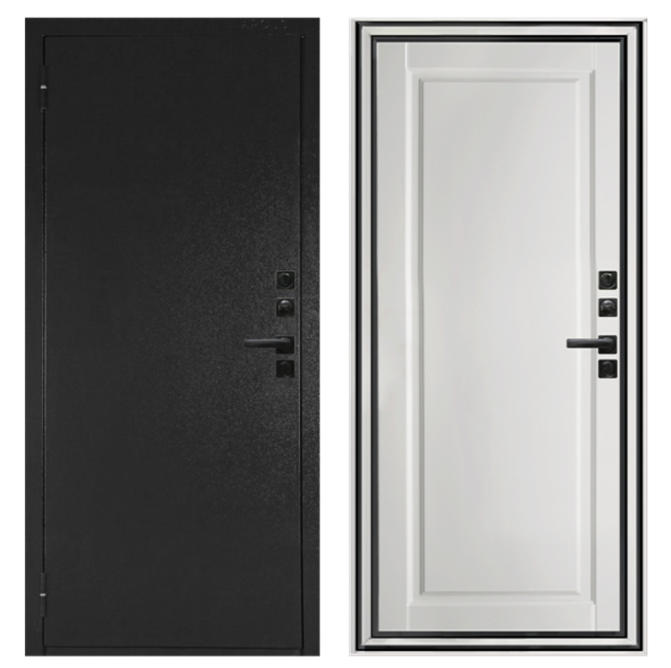 Двери с системой терморазрыва на полотне и коробе. Терморазрыв выполнен благодаря термомостам из стеклонаполненного полиамида СТН-2169 Внутренняя отделка, влагостойкий МДФ, рисунок "Свид" в пленке "Арктик Эмалит", Внешняя отделка Металл с полимерно-порошковым покрытием толщиной 2мм, Акзонобель Муар 7021. Утеплитель: Минеральная плита KNAUF Insulation(негорючий и экологичный), и два дополнительных термоизолирующих слоя «Изодом». Три контура трубчатого уплотнителя. Защита наружной части полотна: специальный грунт от компании AkzoNobel, благодаря которому на его поверхности создается защитная пленка, и атмосферостойкая краска AkzoNobel препятствуют возникновению коррозии, делают полотно устойчивым к атмосферным воздействиям. Дверная коробка: Усиленная профильная конструкция открыто-закрытого типа с терморазрывом. Дверное полотно усилено ребрами жесткости, замковый карман. Толщина полотна - 100 мм. Толщина коробки - 117 мм. Петли Сombiarialdo - СА® (Италия), 14 (высший) класс, с повышенной нагрузочной способностью Противосъемные внутренние фиксаторы. Основной замок: Аргус 512 М (Россия), гарантия 7 лет (4 ключа). Дополнительный замок: Аргус 501 (Россия) ЦИЛИНДРОВЫЙ, , гарантия 7 лет , Цилиндр «Гардиан» или "Фуаро" с терморазрывом . Ночная задвижка. Фурнитура: Крит, квадратная . Цвет фурнитуры: Черный. Внутренняя часть короба в цвет панели. Порог из нержавейки.