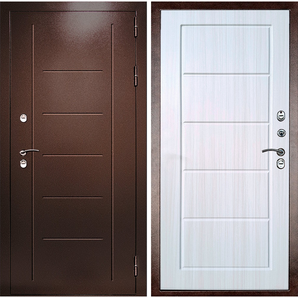 Внешняя отделка Медный антик Внутренняя отделка Панель МДФ: 10 мм., Беленый дуб Уплотнитель 3 контура уплотнения. Толщина полотна 96 мм. Замок основной Сувальдный «Бордер Гранд Термо 3В 9-6Э (87348)», 4 ключа. Автоматические шторки. Замок дополнительный Сувальдный «Бордер Гранд Термо 3В 9-6Э (87348)», 4 ключа. Автоматические шторки. Ночная задвижка Независимая Толщина коробки 100 мм Эксцентрик с возможностью регулировки притвора Терморазрыв полиамидный коробки и полотна с заглушками Защита от снятия Противосъемные регили: 3 шт. Петли 3 приварные петли на подшипниках Короб двери утепленная , цельногнутая , замкнутая Утепление материал Минеральная плита + Пенополистирол+Изолон, утепление полотна. Миниральная вата, утепление рамы Толщина металла 1.5 мм. Назначение Улица